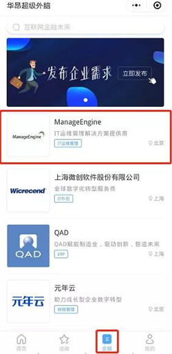 近日,ManageEngine与上海华昂商务咨询有限公司(以下简称:DC华昂)达成密切合作,正式入驻DC华昂《超级外脑》“企业服务”平台。