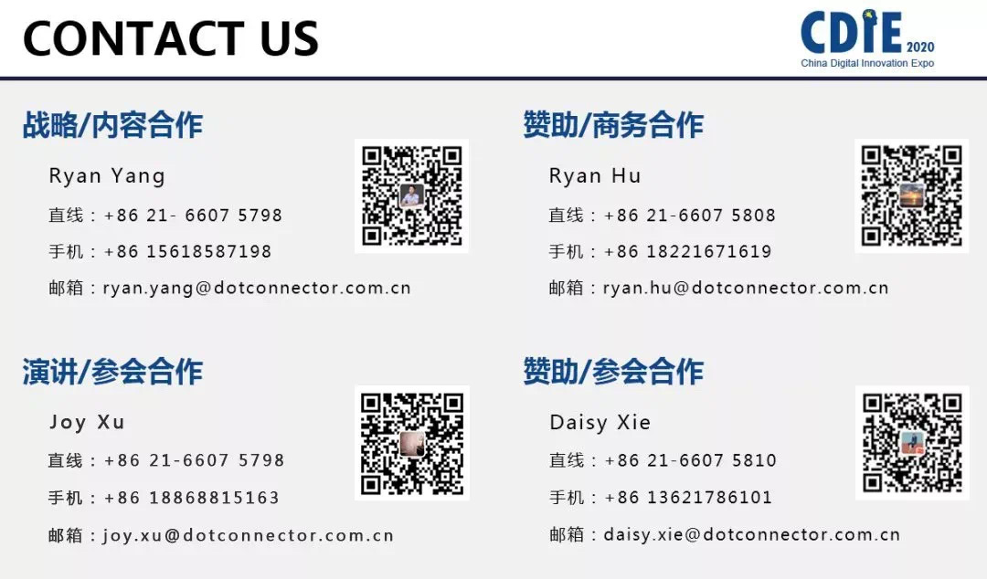 CDIE2020将于7.22-23在上海盛大开幕,将首次融合GMTS营销技术和BTI银行技术两大品牌会,将继续聚焦前沿,探讨数字创新技术与实践应用!CDIE2020预计将有2000位行业人士参会,参会嘉宾75%均来自于世界500强企业,汇集零售快消、制造、金融等众多领域的CEO,CIO,CMO,CGO、CFO等企业数字化创新决策人。